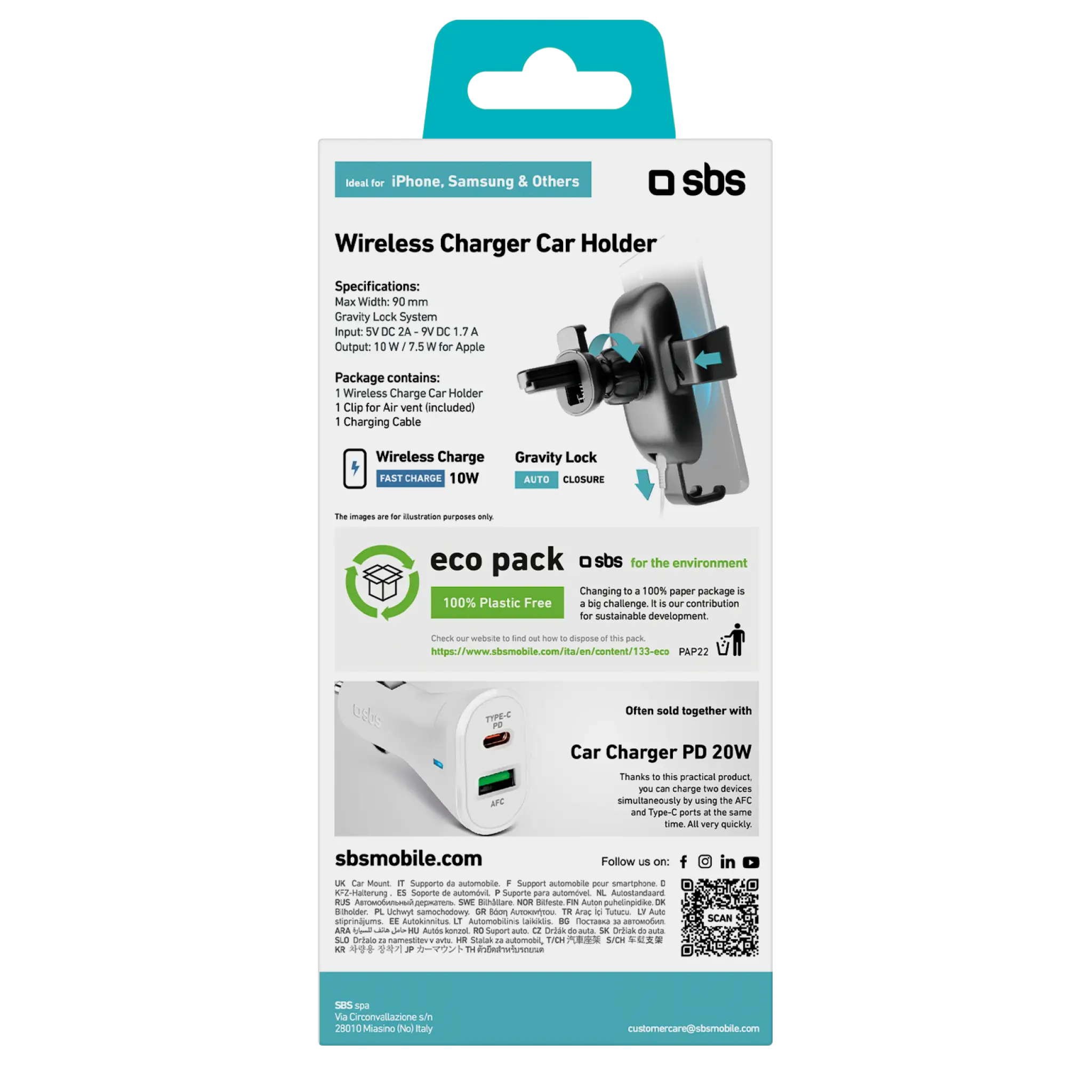 Produktinformation "SBS Trådlös Gravity Smartphone-hållare för bilar med en snabbladdare"