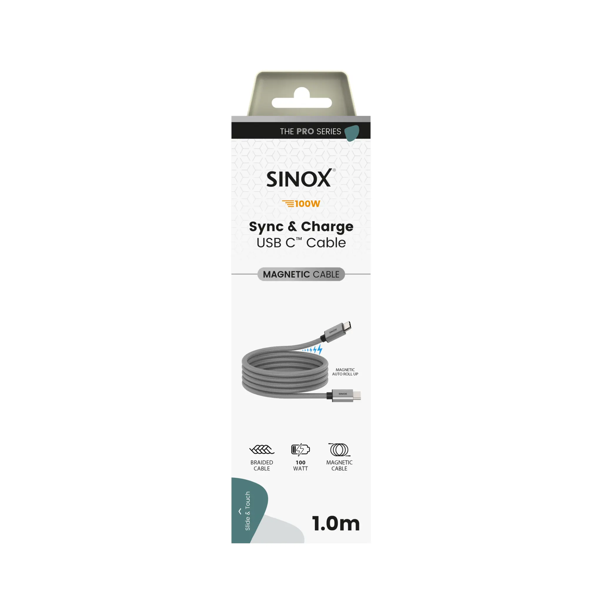 Smart och praktisk Sinox PRO USB C-kabel med magnetisk upprullningsfunktion - perfekt för laddning och dataöverföring. Säg adjö till kabeltrassel och ta den enkelt med dig när du är på språng. Kompatibel med alla USB C-enheter.