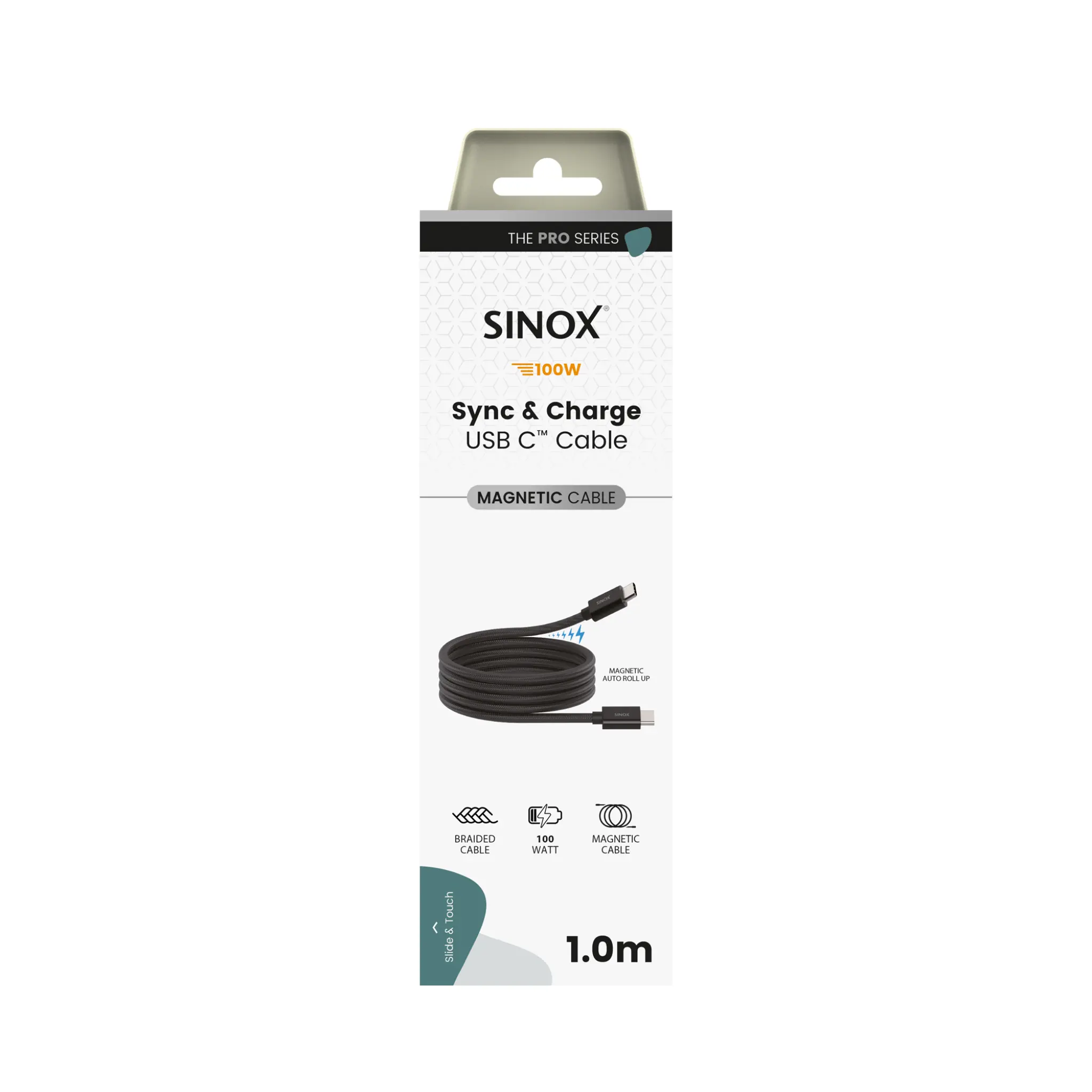 Smart och praktisk Sinox PRO USB C-kabel med magnetisk upprullningsfunktion - perfekt för laddning och dataöverföring. Säg adjö till kabeltrassel och ta den enkelt med dig när du är på språng. Kompatibel med alla USB C-enheter.